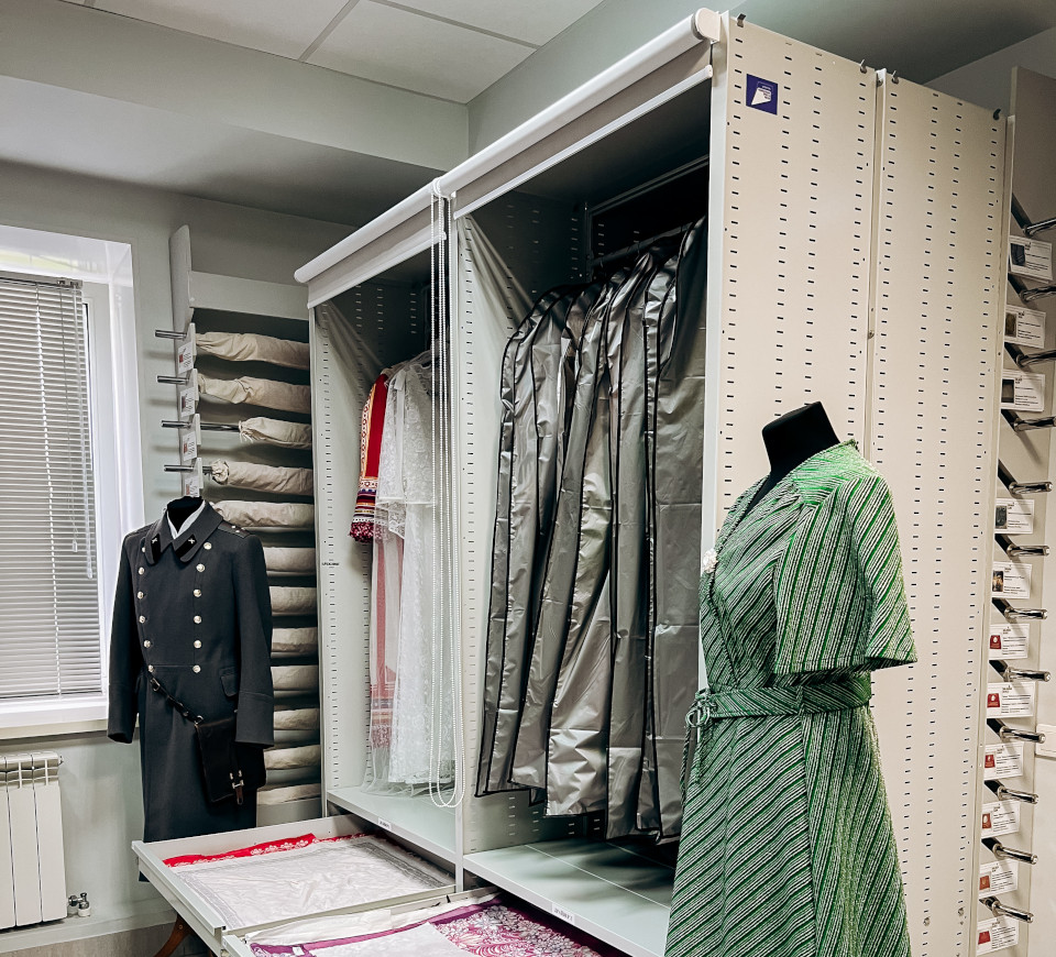 Изготовим передвижные стеллажи для хранения одежды на складе или в фондах музея с доставкой с завода производителя в города Астраханской области и России.